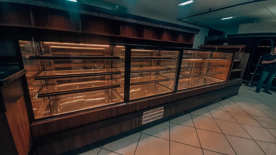 Balcão com vidro, sob medida. Refrigerado Balcão refrigerado, em inox, para área gourmet. Área gourmet, com balcão, churrasqueira pia e refrigeradores. Completa. Balcão refrigerado em inox, com iluminação interna. Fino acabamento. Toda em inox. Moderna.